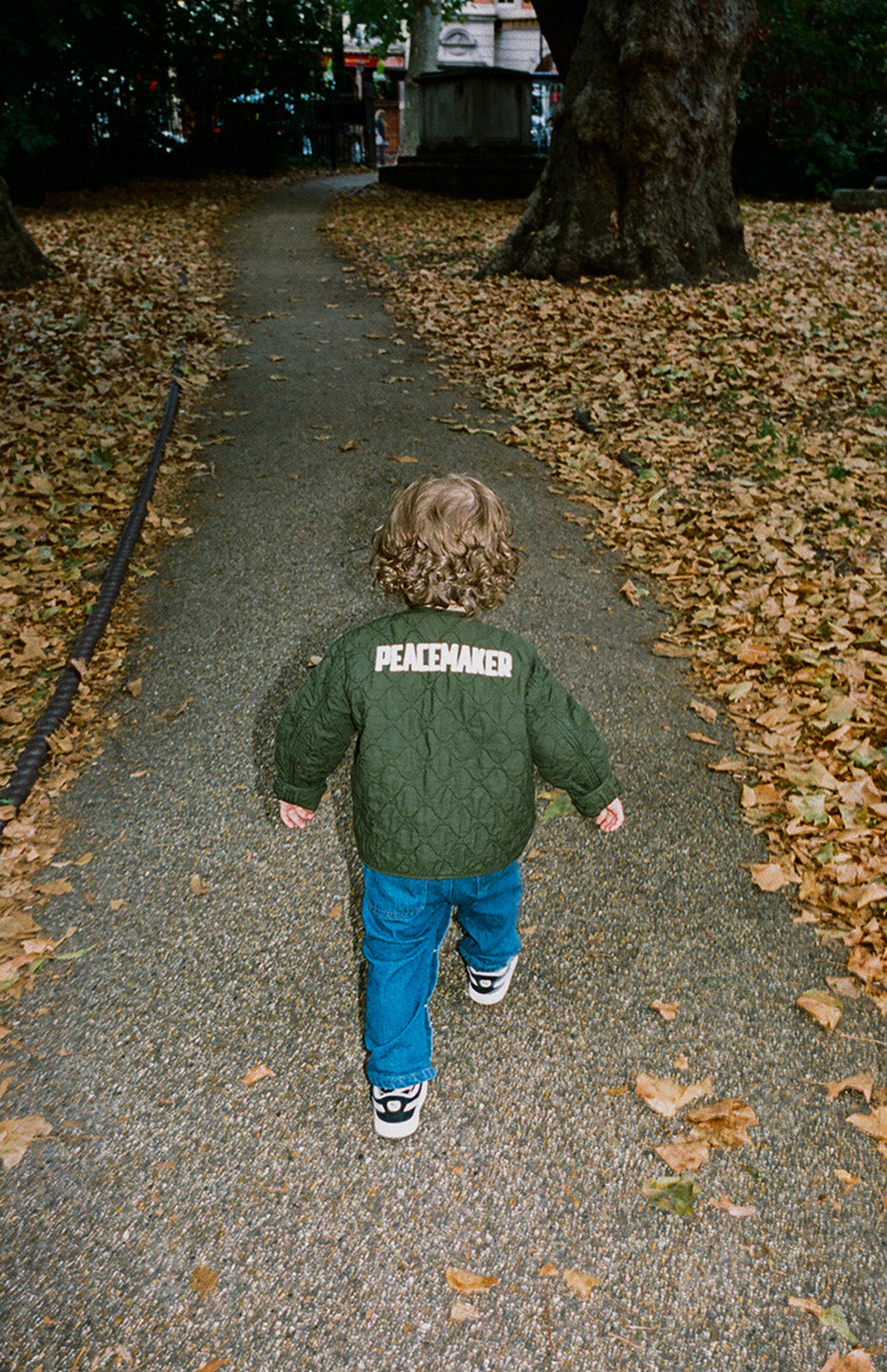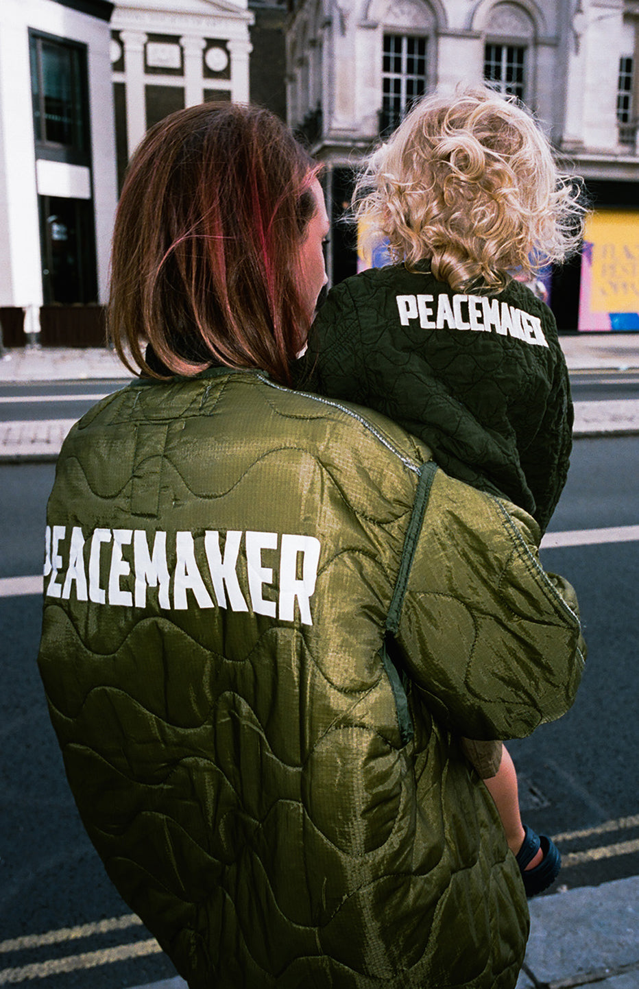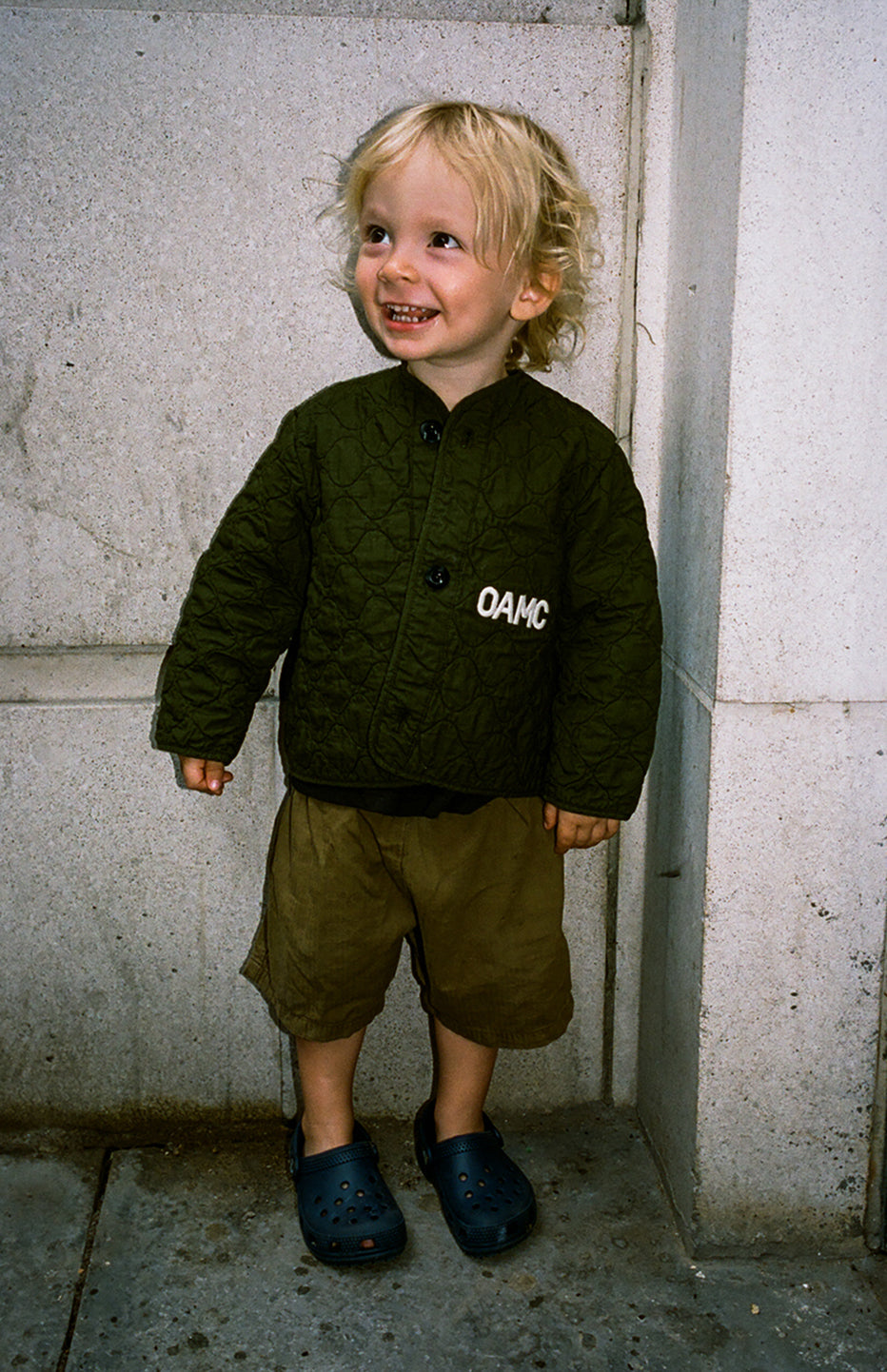 OAMC has developed its signature Peacemaker liner jacket for children from 6 to 18 months old.
