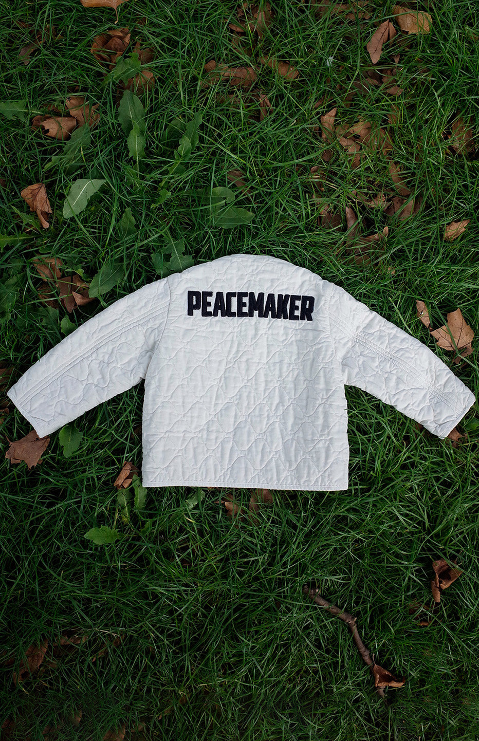 The Baby Peacemaker liner jacket is made from organic cotton poplin with recycled silk and polyester padding.