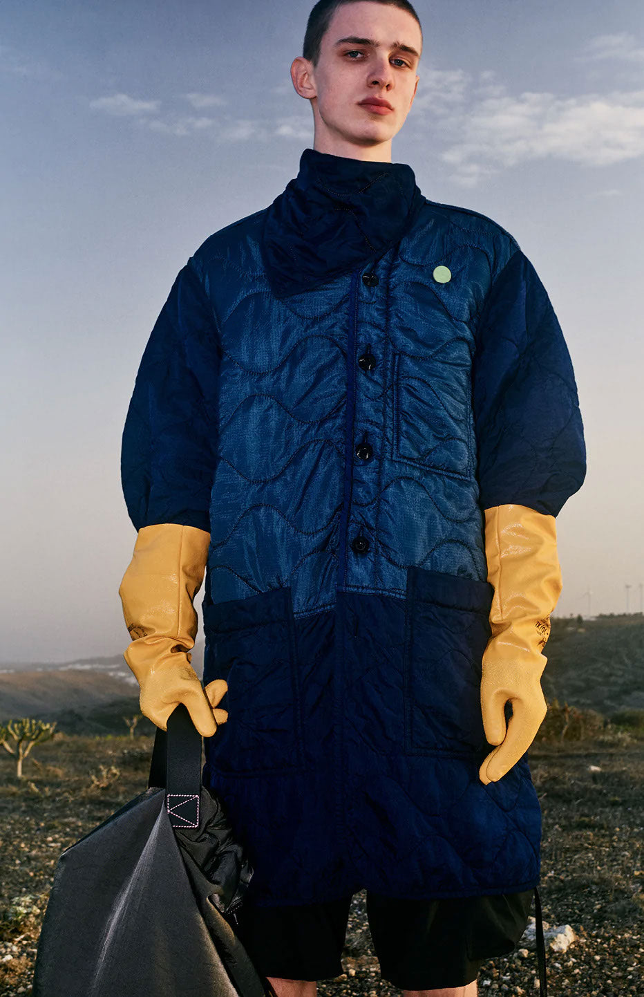 第一弾のRe:Workコレクションには、ミリタリーデザインの影響が色濃く見られます。OAMCならではのアメリカ軍フィールドジャケットのライナーへのアプローチはそのまま、オーバーダイを採用し、ポケットや金具、クロージャー、取り外し可能なフードなどを加え、形を変えて新しいシルエットを作り出しました。アメリカ、チェコ共和国、イタリアからの衣類や布地が全体に使用されています。