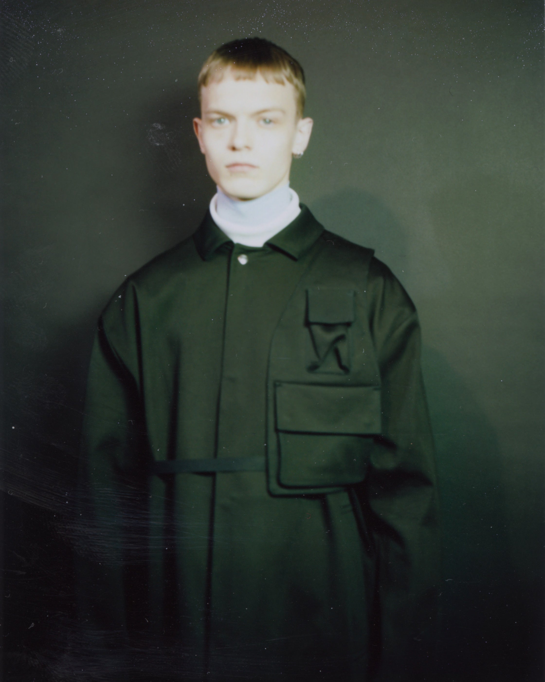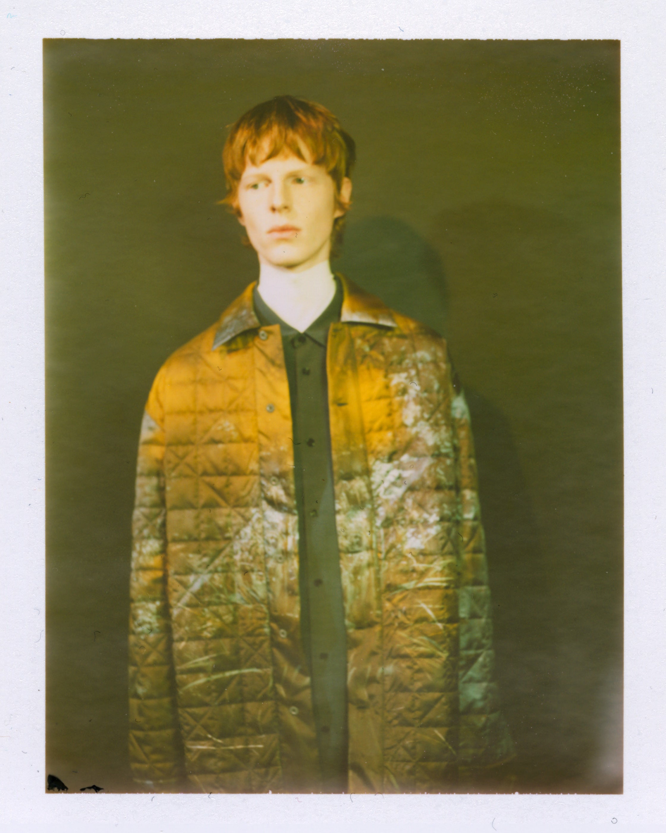 Re:Workは、機能的な雰囲気を保ちつつ、よりコンセプチュアルなフレームワークへと押し上げられました。カモフラージュモチーフも、オーバーダイを施したカラーパレットも、高山植物をインスピレーションとしています。ミリタリーウェアは素材も、形状も大切に扱い、再利用の対象に。丁寧に染色や仕上げを施しました。ヴィンテージのナイロン製パラシュートを解体し、成形・綿入れ・裏地付けの後オーバーダイを施すことで、円形のパネルを原料にした衣服づくりを提案しています。縫製部分は、強調されたまま残しました。何人もの人々が、時間をかけて、それぞれ違う場所でこれらの衣服を作り上げていることは、今の世界で不足していると思わざるを得ない、美しい団結と共同作業を象徴しているのです。